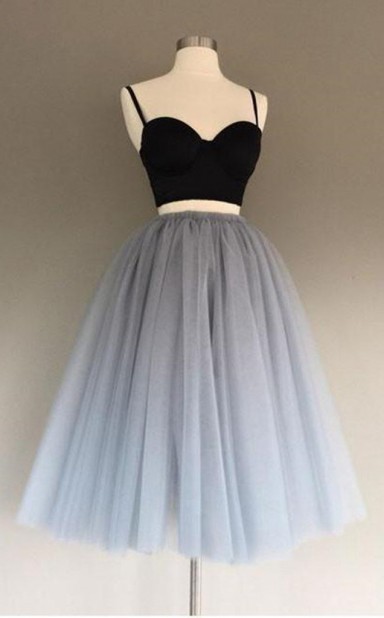 2 Stücke Schwarz Grau Kurzes Abschluss ballkleid REAL026