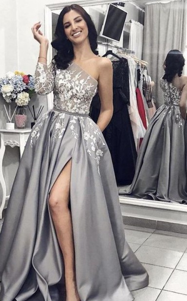 A-line One-shoulder-zug Mit Appliziertem Satinkleid JTC18473