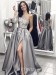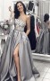 Hell Königsblau Satin V-ausschnitt Träger Prinzessin Langen Sex Ballkleid (GJT3746)