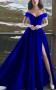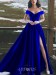 Dunkelblaue Spitze Von Der Schulter Halbes Ärmel Ballkleid Langes Promikleid (GJT3758)