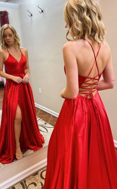 V Hals Orange Spitzen -Abschluss ballkleid REALS049