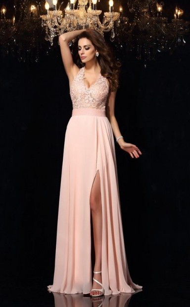 A-linie Chiffon Halfter Zug Mit Spitzenkleid JTC1813