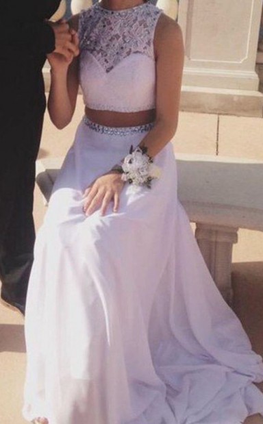 A-linie Chiffon Juwel Bodenlang Mit Perlen Zweiteiligen Kleid JTC3713