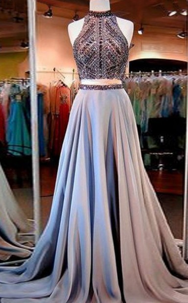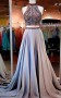 A-linie Satin High Neck Bodenlang Mit Perlen Zweiteiliges Kleid JTC5673