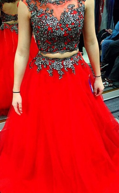 A-linie Satin Schaufel Bodenlang Mit Applikation Zweiteiliges Kleid JTC3923