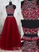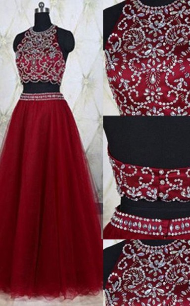 A-linie Tüll High Neck Zug Mit Perlen Zweiteiligen Kleid JTC5683