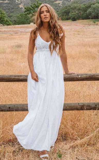 Elegante A-linie Träger Weißes Langes Chiffon Strandhochzeitskleid Twa1022
