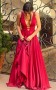 Meerjungfrau Träger V-ausschnitt Mit Applique Zug Satin Kleid JTC11823