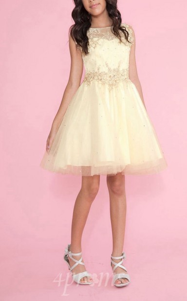 ärmelloses Mini-prinzessin-ballkleid Für Kinder Aus Champagner-tüll-satin (FGD295)