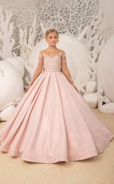 Juwel Langarm Weiß Kinder Ballkleider Chk013