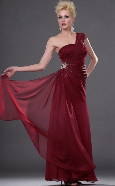 Burgunder Chiffon Scheide eine Schulter lange Brautjungfer Kleid (GBD450)