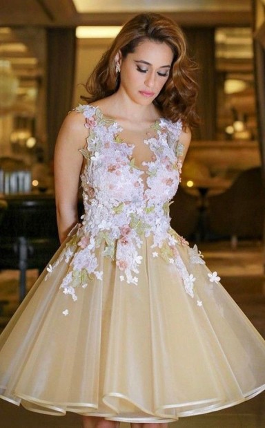 A-line Tüllschaufel Shortmini Mit Applikationskleid JTCv8413