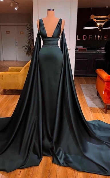Dunkelgrün Sexy V-Ausschnitt Meerjungfrau Ballkleider REALS220