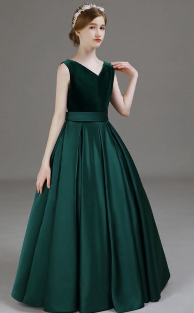 Dunkelgrünes Kleid für formelle Anlässe für Kinder, Junior-Brautjungfernkleid GJFGD028