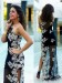 V Hals Schwarz Weiße Abschluss ballkleid REALS070