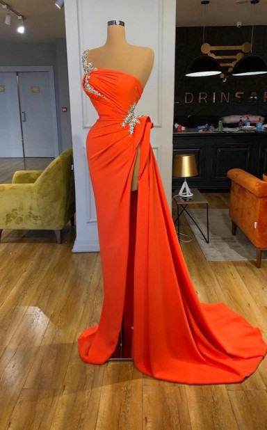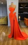 Eine Schulter Orange Rote Hohe Abtret Kleid REALS196