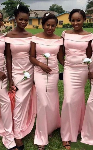 Einfaches Rosa Meerjungfrau-brautjungfernkleid Schulterfreies Kleid Der Trauzeugin BED06292