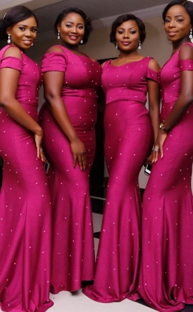 Meerjungfrau Zarte Kristalle Pailletten Schulterfreies Brautjungfernkleid RP10042