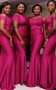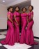 Elegante Kalte Schulter Meerjungfrau Brautjungfernkleider Einfache Perlen Lange Abendkleider BEQ95552