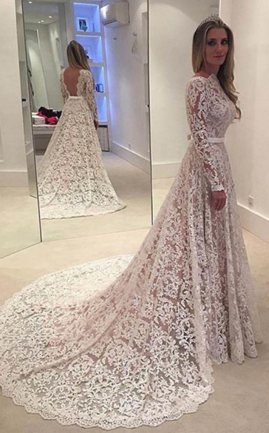 Elegantes Rückenfreies Brautkleid Aus Spitze In A-linie Mit Hofschleppe Twa0522