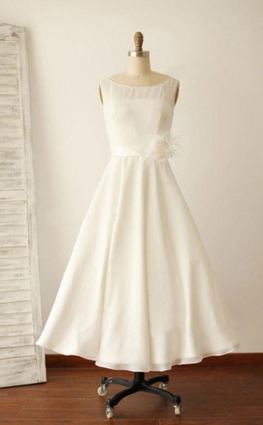 Elfenbein Illusion U-boot-ausschnitt Tee Länge ärmelloses Brautkleid Twa0732