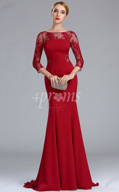 Etui-säule U-ausschnitt Spitze Sweep-schleppe Ärmel Brautjungfernkleid LPL1212