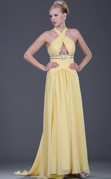Gelb Chiffon A-Linie Halfter lange Brautjungfer Kleid(GBD463)