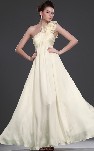 Gelbe Chiffon A-Linie eine Schulter lange Brautjungfer Kleid (GBD474)