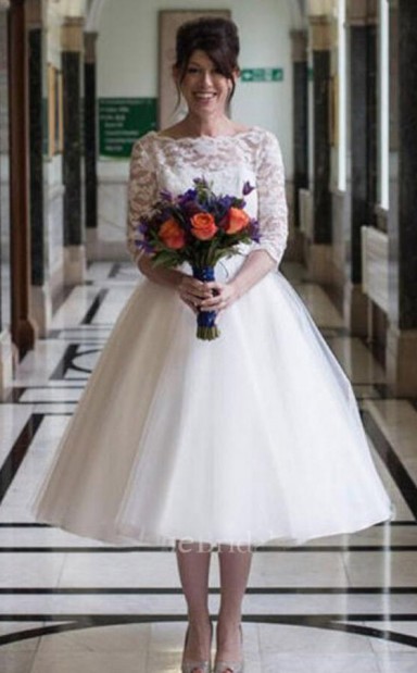 Halbärmel Spitze Tee Länge Rockabilly Hochzeitskleid GBWD272