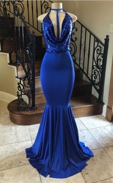 Halfter Königsblaues Meerjungfrau Abendkleid REALS136