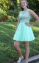 Hellgrüne A-linie Bateau Short / Mini Cocktailkleider Aus Tüll (GJT3928)