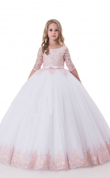 Juwel Halbe Ärmel Erröten Rosa Kinder Ballkleider Chk010