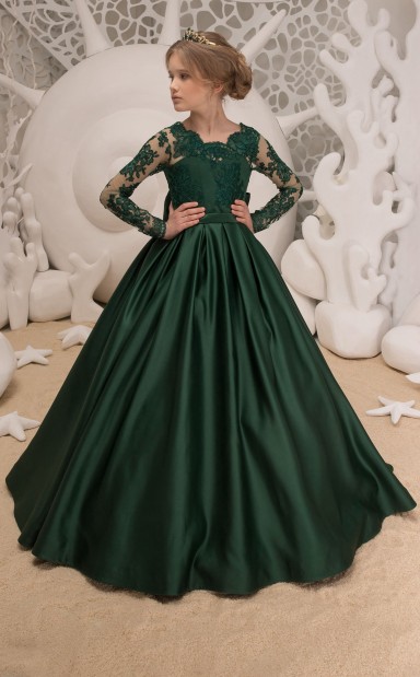 Juwel Langarm Dunkelgrün Kinder Ballkleider Chk040