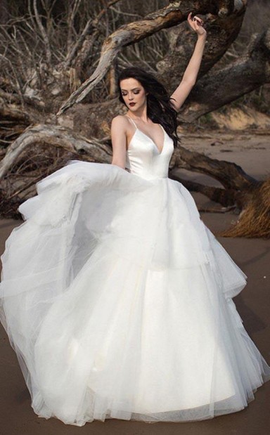 A-linie V-ausschnitt Tüll Spitzenapplikationen Romantisches Hochzeitskleid Brautkleid Twa4802