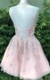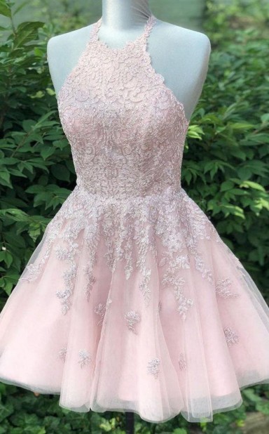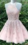 Kurzes Neckholder -hals -rosa -spitzen -Abschluss ballkleid REAL022