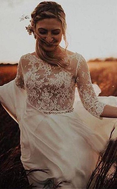 Langärmliges Bateau Durchsichtiges Mieder A-linie Brautkleid Twa4062