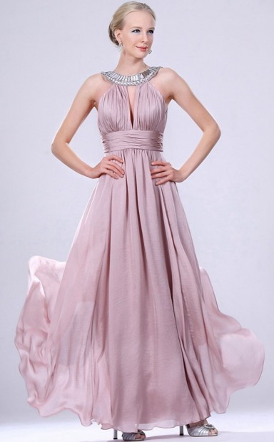 Lavendel Chiffon A-Linie Juwel lange Brautjungfer Kleid(GBD468)