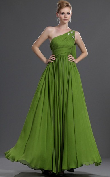 Elfenbein Chiffon A-Linie eine Schulter lange Brautjungfer Kleid(GBD472)