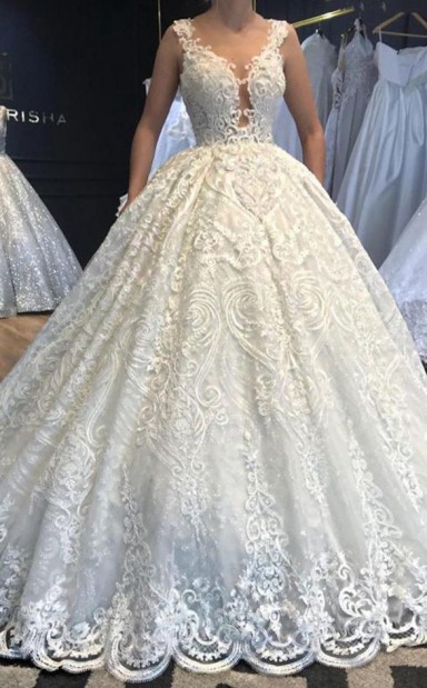 Luxus Ballkleid Perlen Spitze Brautkleid Hoch Maßgeschneiderte GBWD019