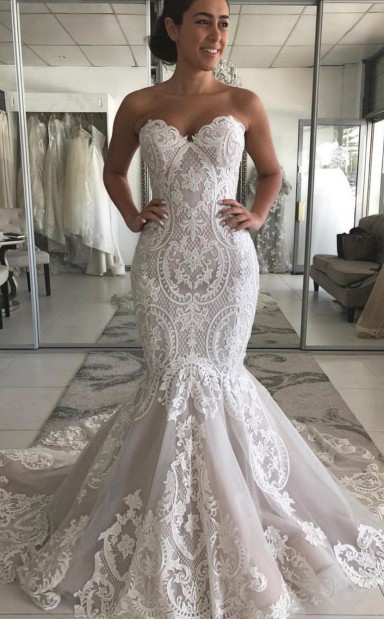 Meerjungfrau Schatz Langen Zug Tüll Spitze Applikation Brautkleid GBWD002