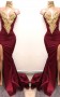 Meerjungfrau Taft High Neck Langarm Gericht Zug Mit Perlen Zweiteiligen Kleid JTC3823