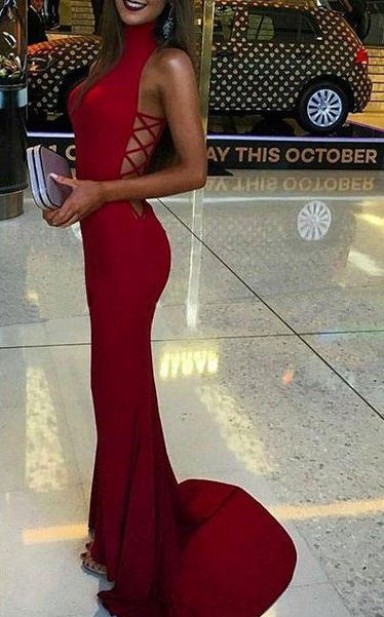 GEBD023 Rote Brautjungfernkleider Mit V-ausschnitt