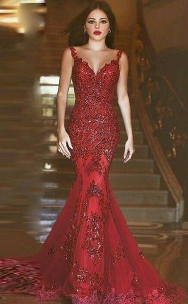 Meerjungfrau Tüll V-ausschnitt Zug Mit Applikation Kleid JTC2313