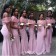 Rosa Kurze Ärmel Brautjungfernkleider Spitze Meerjungfrau Trauzeugin Kleid LV06012