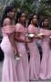 Meerjungfrau Zarte Kristalle Pailletten Schulterfreies Brautjungfernkleid RP10042