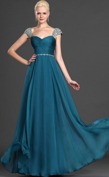Ozeanblau Chiffon A-Linie von der Schulter lange Brautjungfer Kleid (GBD499)