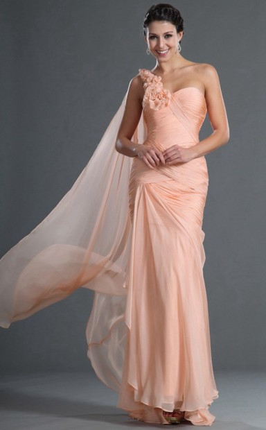 Pearl Pink Chiffon Trompete/Meerjungfrau Ein Schulter langes Brautjungfernkleid (GBD545)