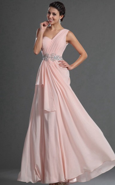 Pink Chiffon A-Line One Schulter langes Brautjungfernkleid (GBD517)