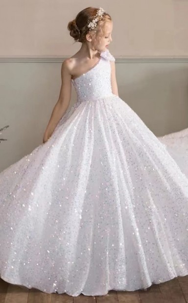 Juwel Langarm Weiß Kinder Ballkleider Chk013
