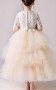 Elfenbein Taft Tüll Quadrat 3/4 Länge Ärmel Bodenlange Prinzessin Kinder Ballkleid (FGD332)